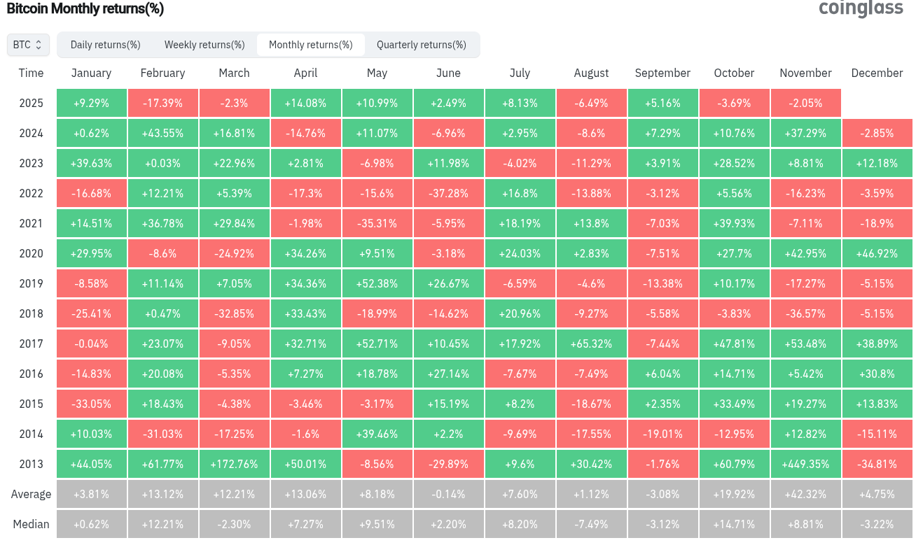 CoinGlass verileri durumun ciddiyetini gösteriyor. 2013’ten bu yana ortalama Kasım kazancı %40’ın üzerinde gerçekleşti.