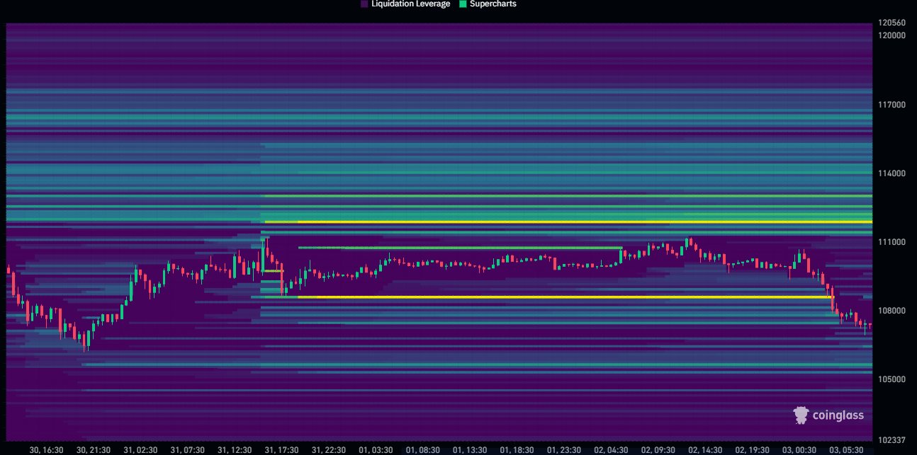 Bitcoin günlük kapanışı tamamladıktan hemen sonra düştü ve 107.000 dolara geriledi.