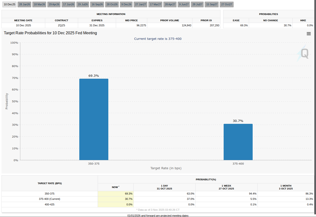 CME Group’un FedWatch Tool verilerine göre Fed’in Aralık ayındaki bir sonraki toplantısında faiz indirimi olasılığı %63.